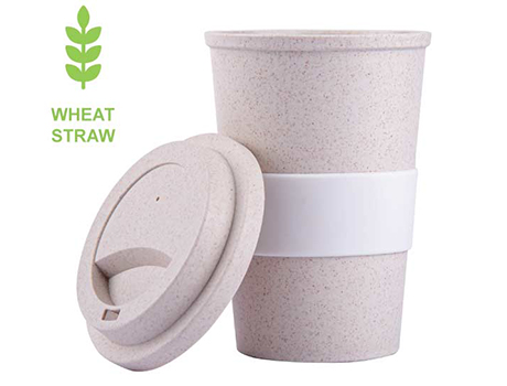 • Reusable coffee mug 380ml made from wheat straw and silicone grip to help you hold hot liquids.